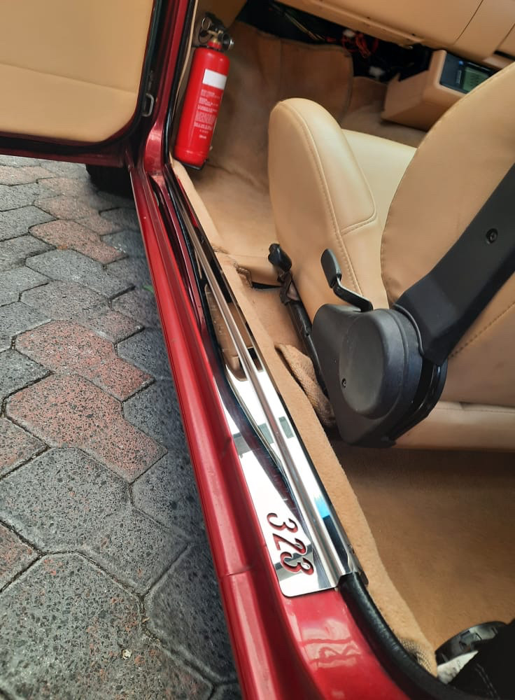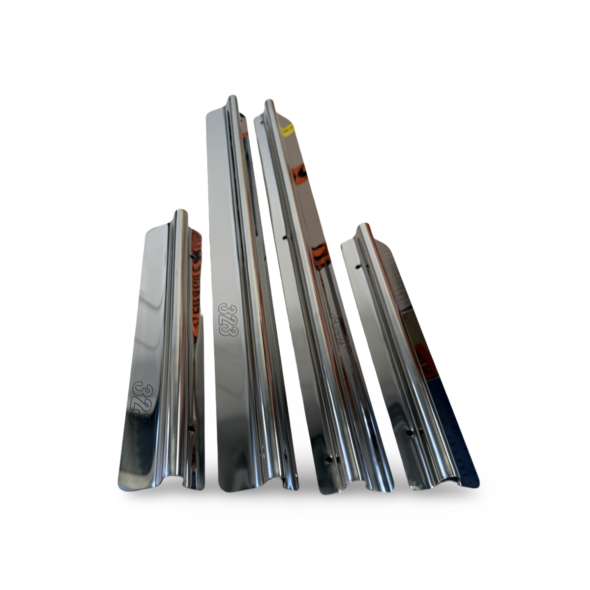 323 4door Hatch/Wagon Scuff Plates – Polished Stainless323 Polished Stainless Scuff Plates