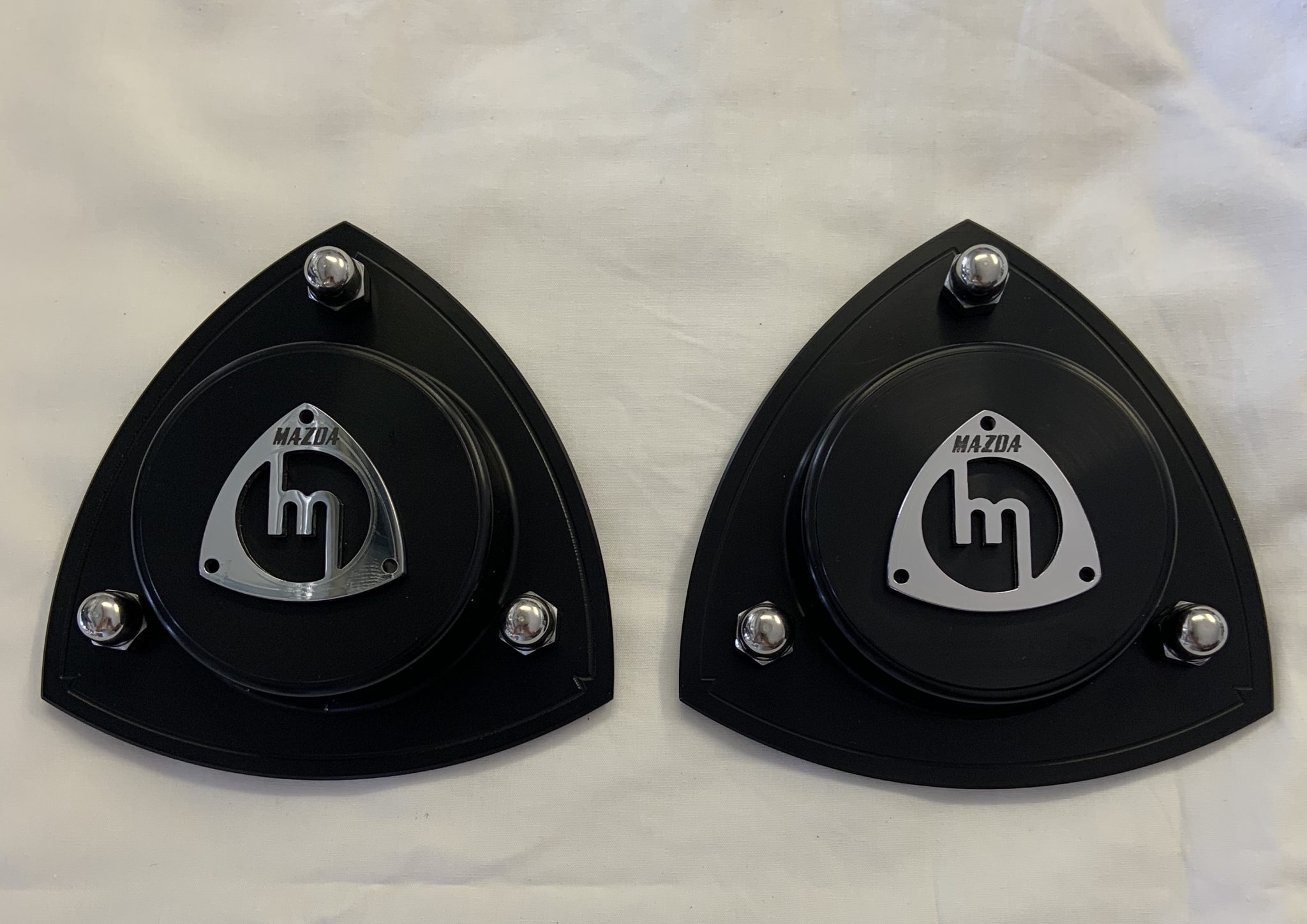 Mazda engraved R100/1300/1200/Rx2 Billet Alloy strut tops25MM THICK BILLET ALLOY POLISHED