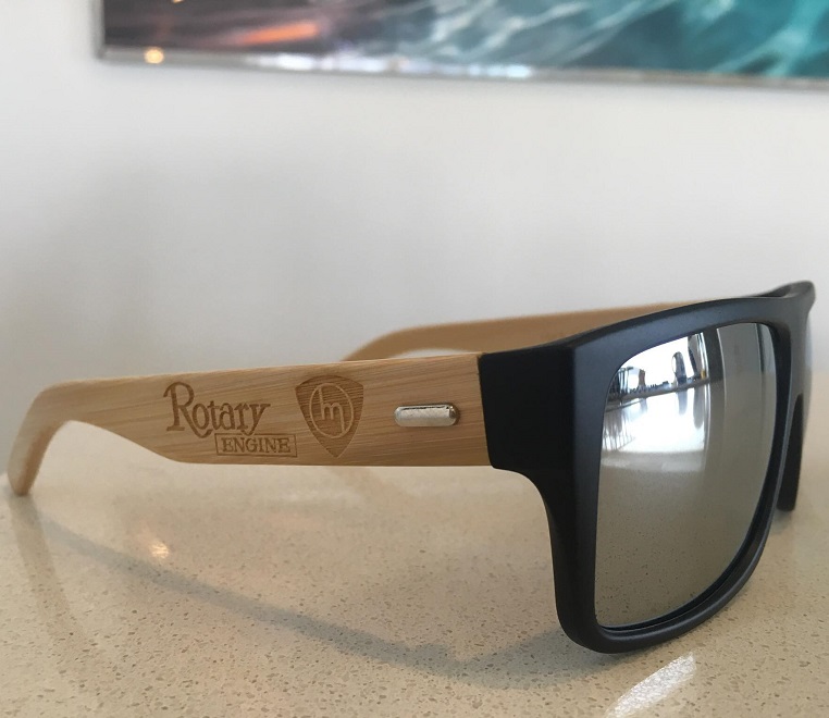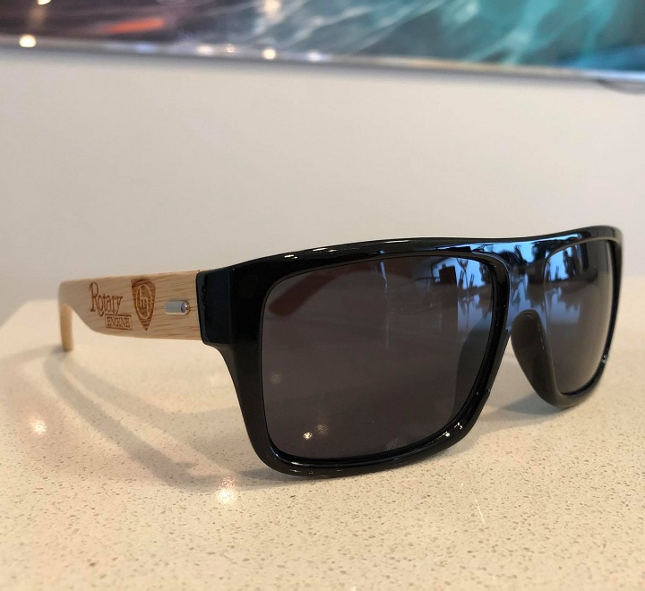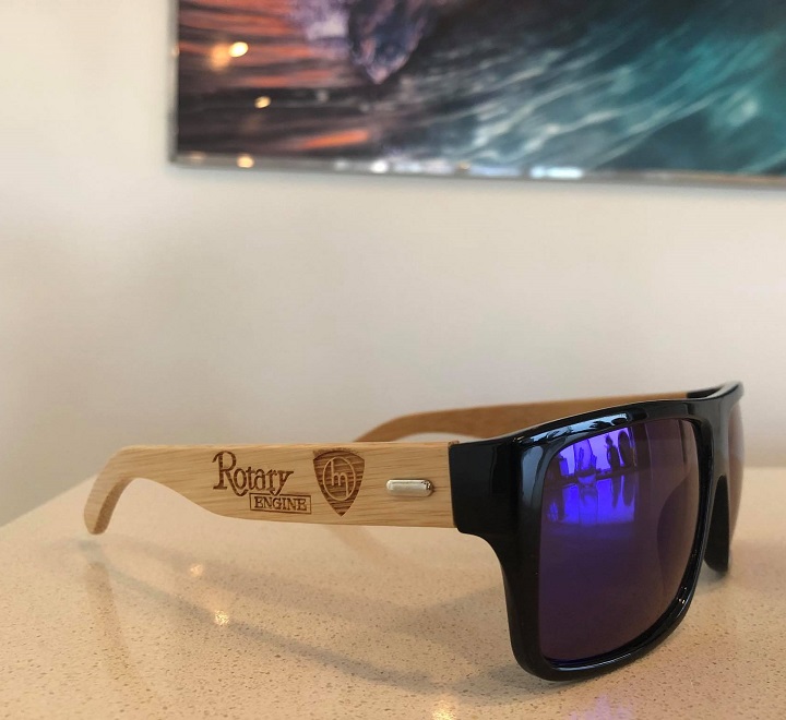 Rotary Engine Sunnies – Black lensesBamboo engraved arms