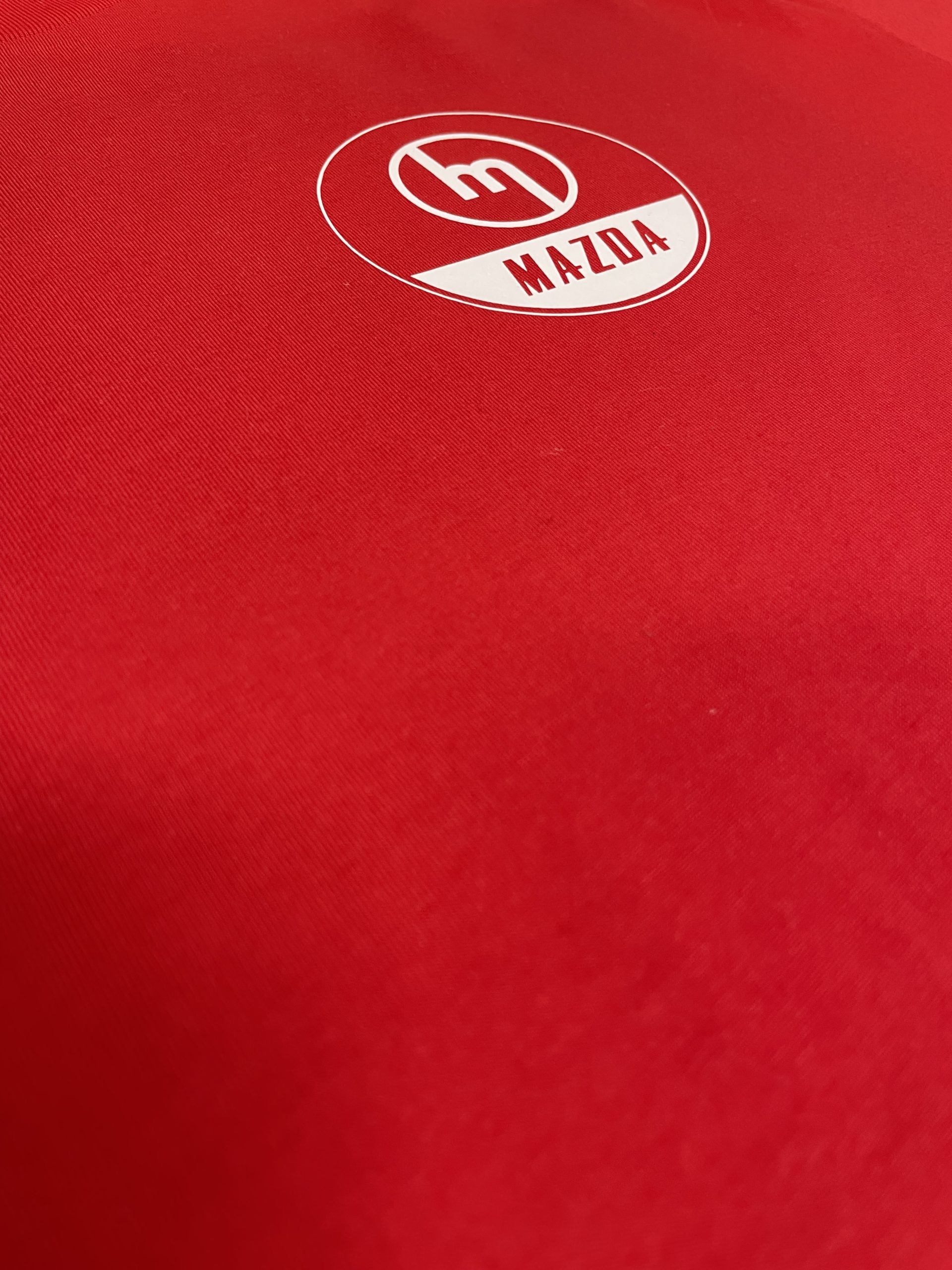 Red Tee – White Mazda HoopRed Tee, High quality Garment
