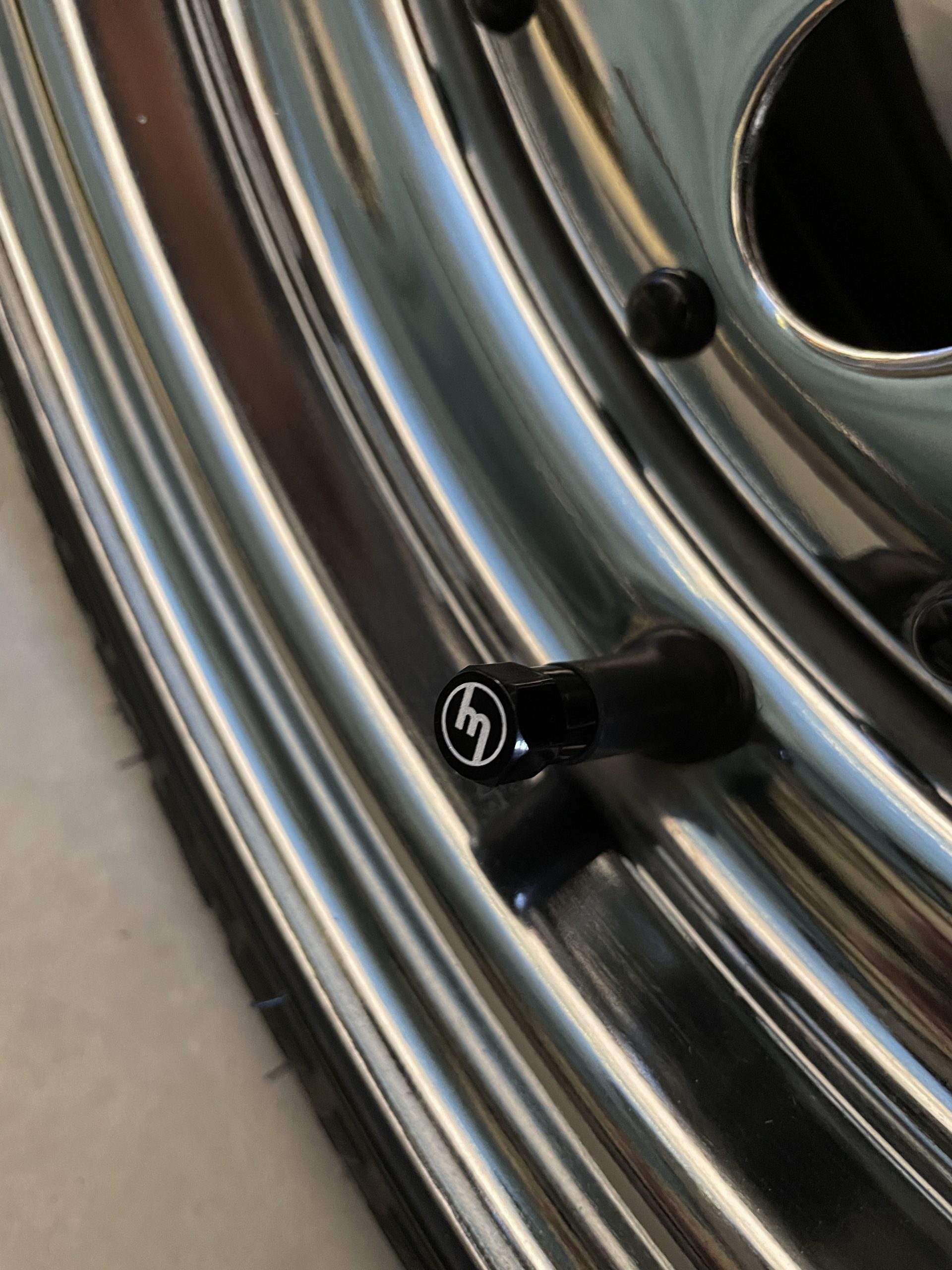 Black Valve Caps – Lazy M logo