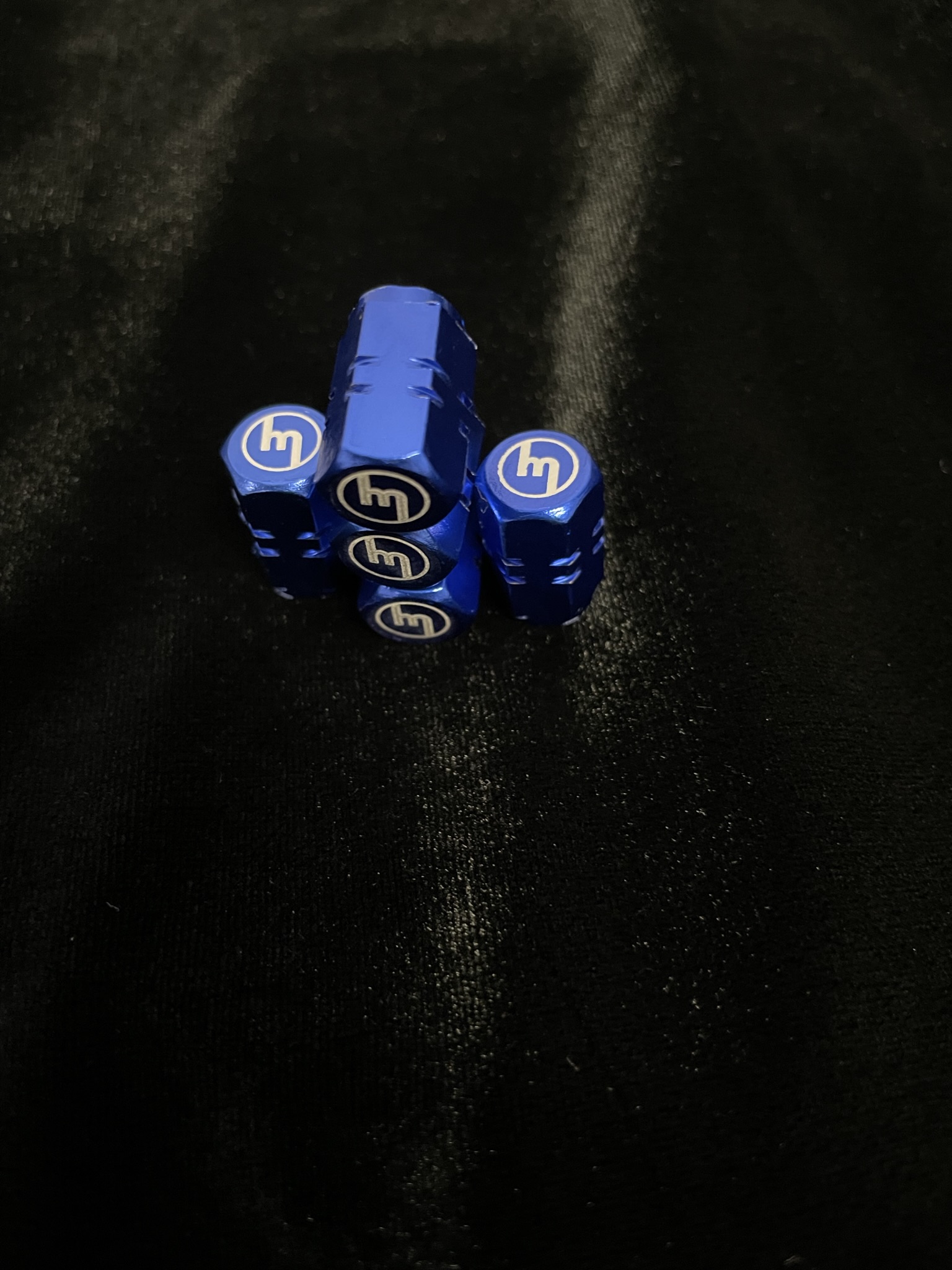 Blue Valve Caps – M logo