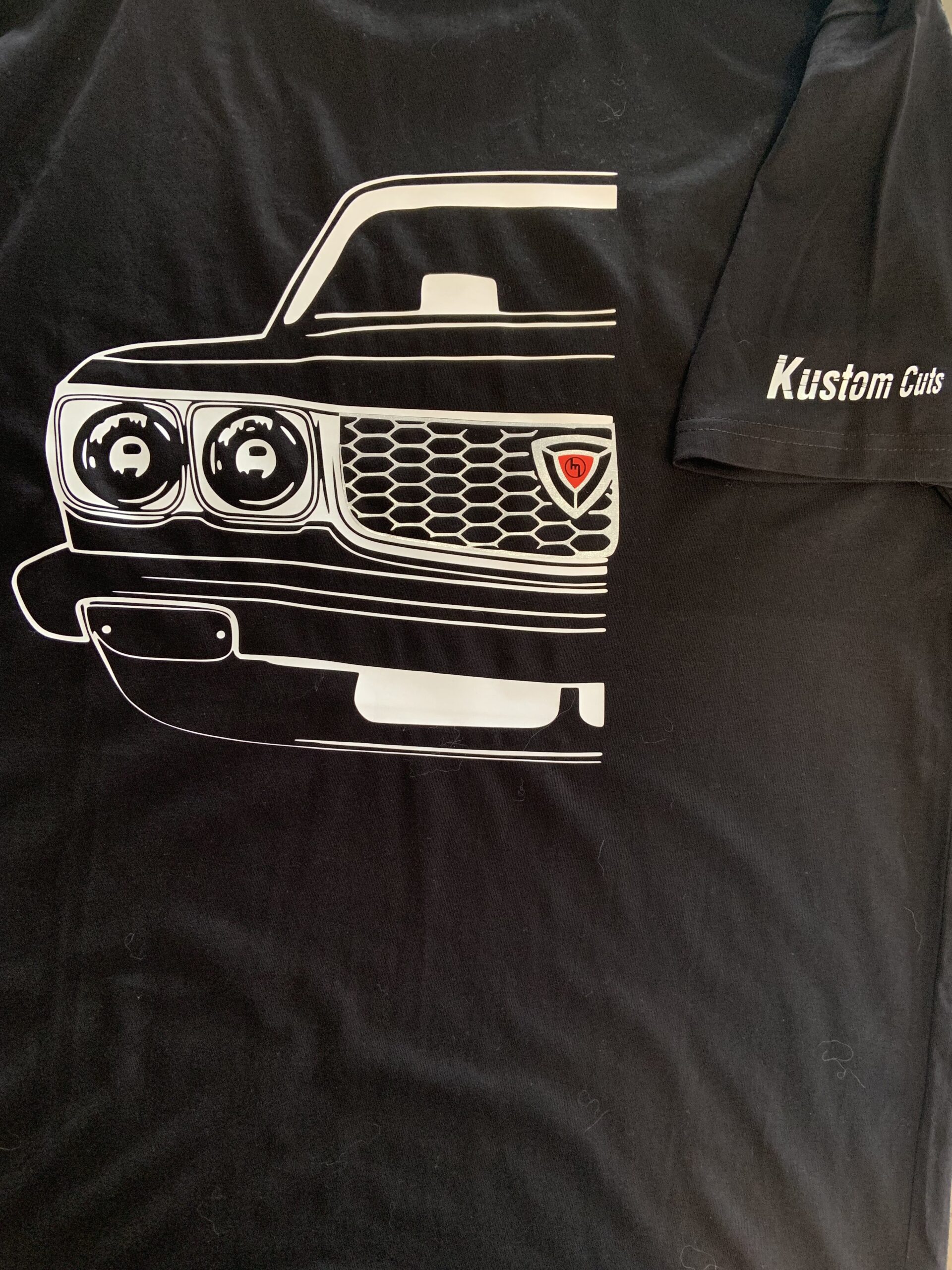 white print with chrome grill and red badge