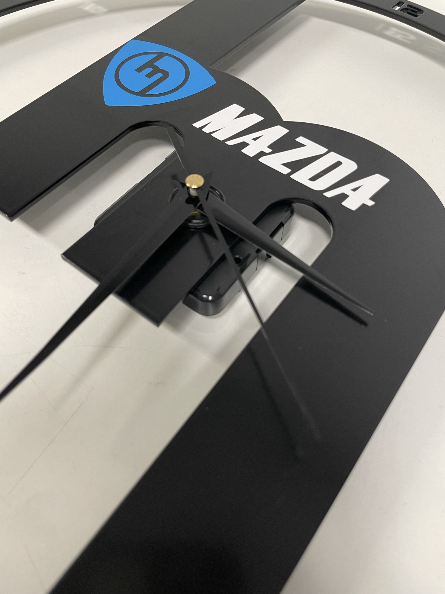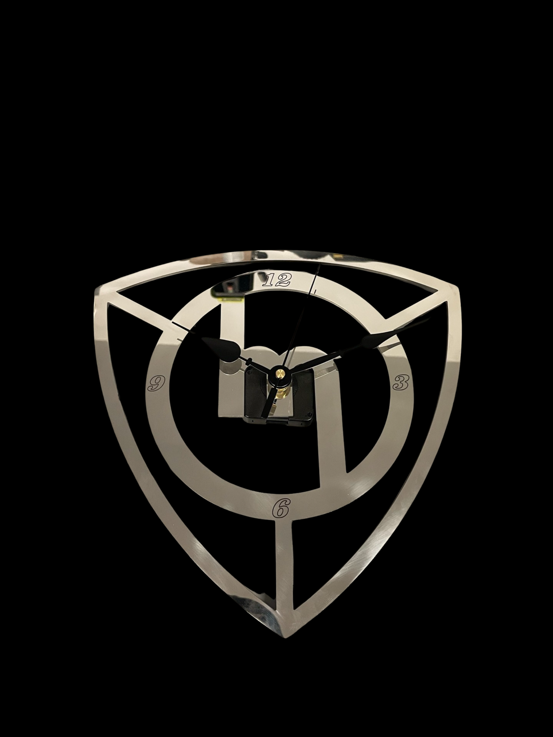a stainless steel polished mirror laser cut clock with laser etched numbers.
