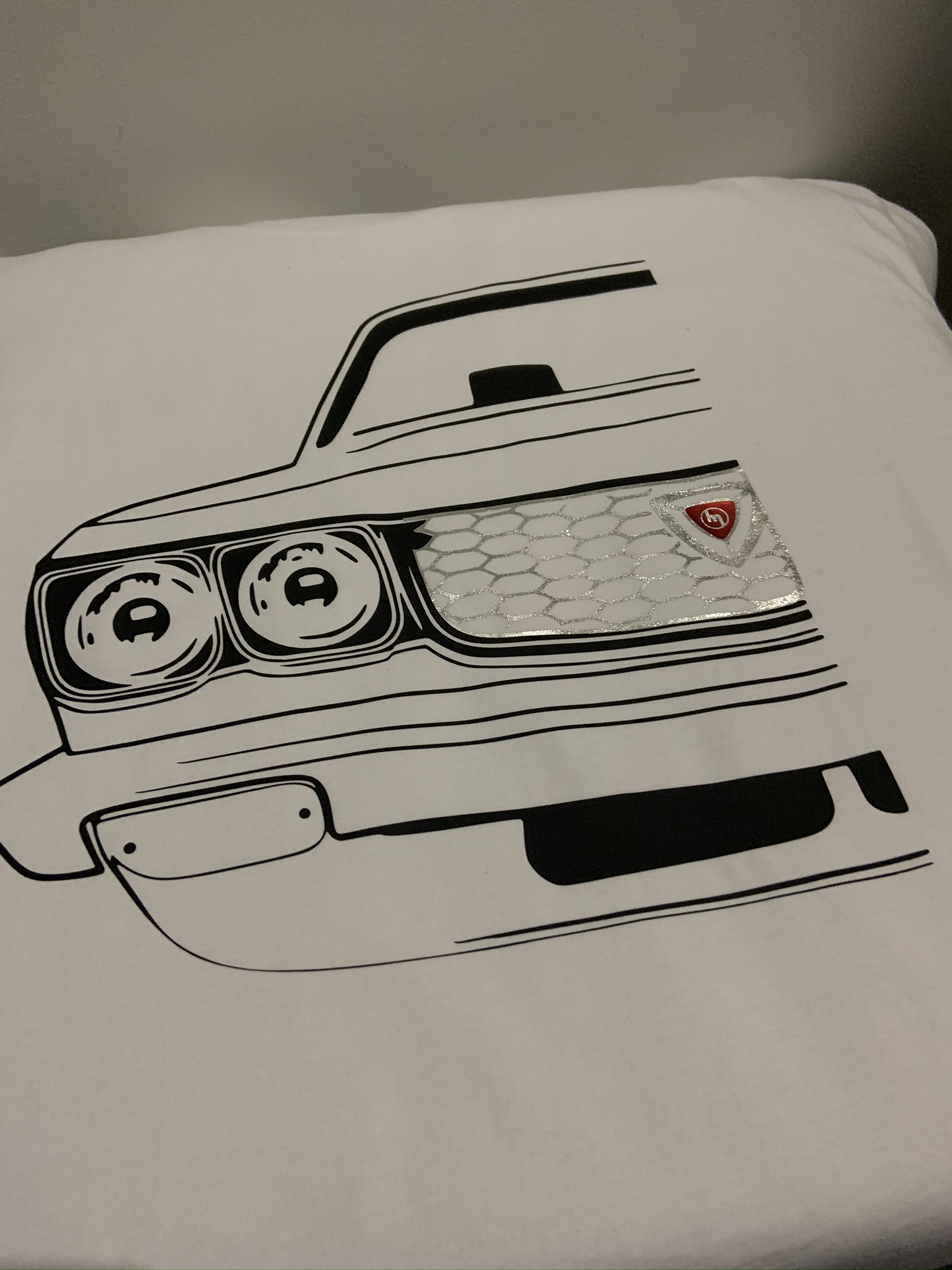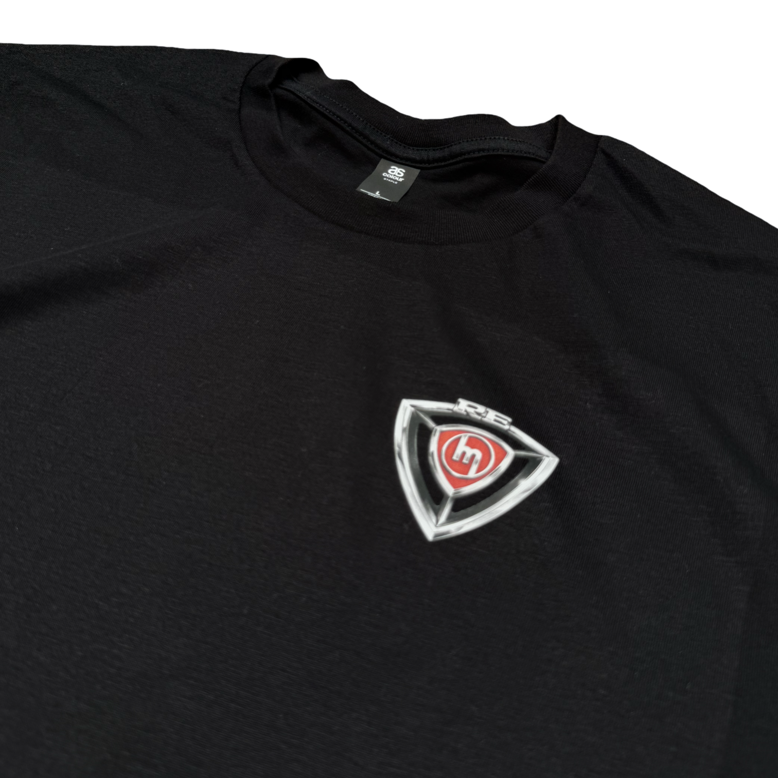 white tee black/chrome/red print