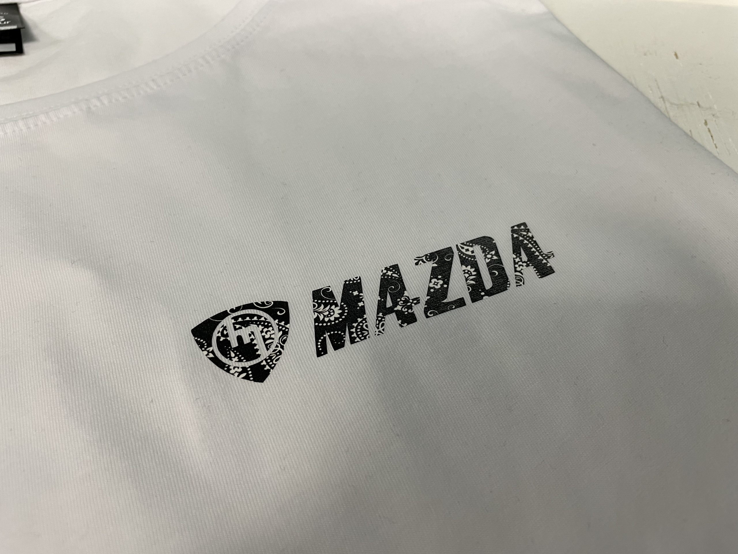 White M Mazda – Red TeeWhite m mazda logos