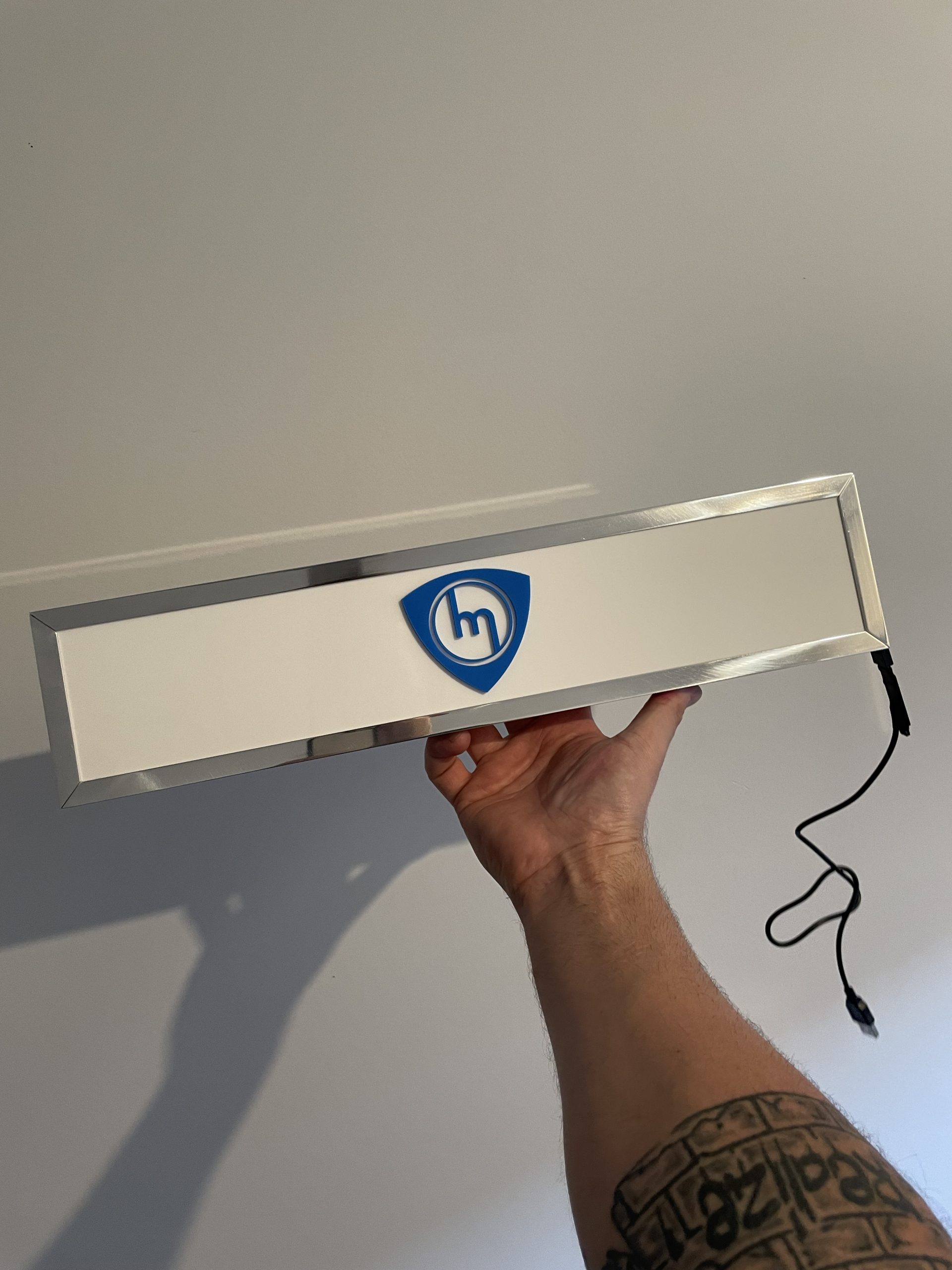 White Mazda LED Light Blue MWhite Mazda logo sign