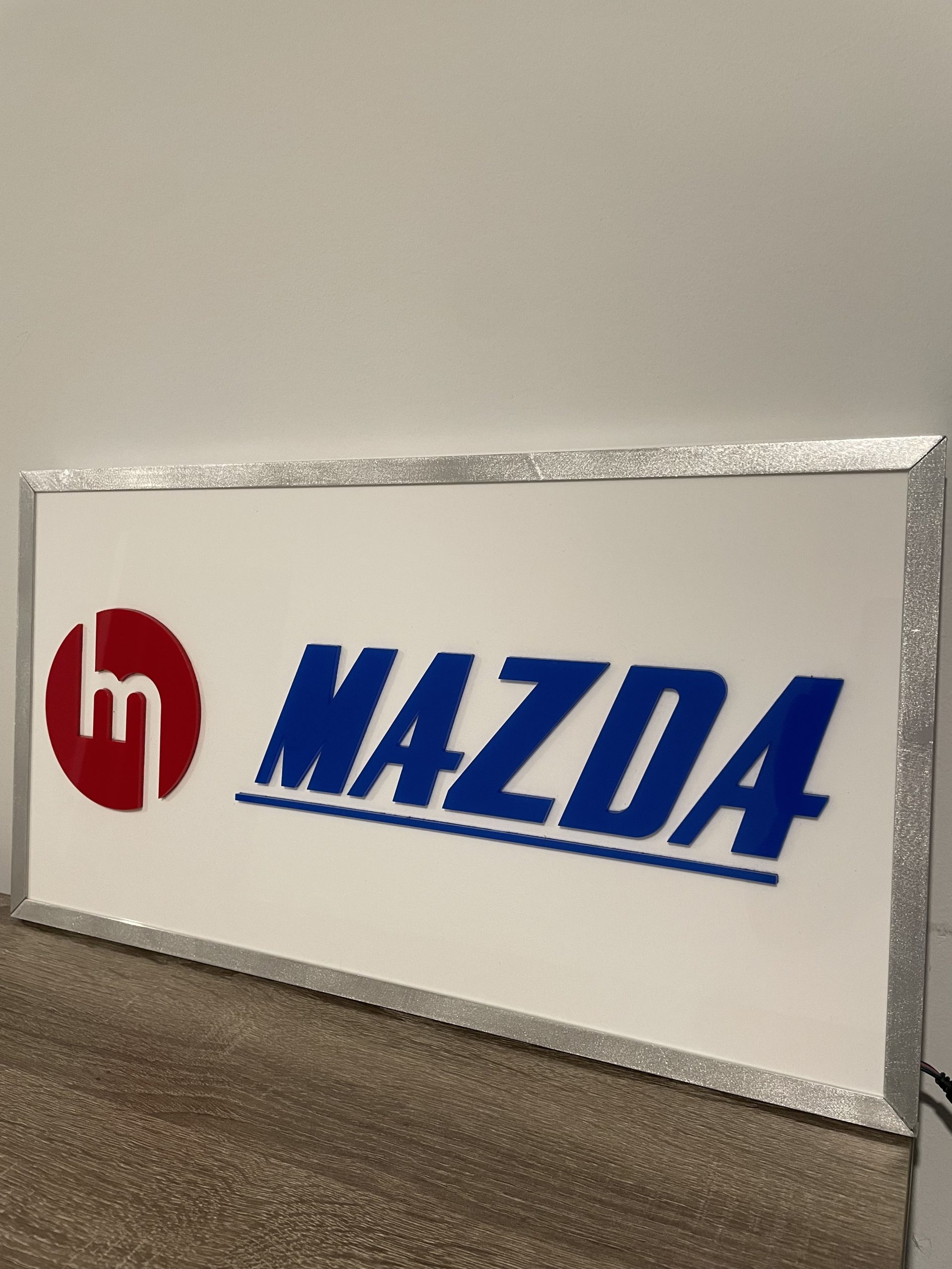 White Mazda LED Light Red M Blue MazdaWhite Mazda logo sign